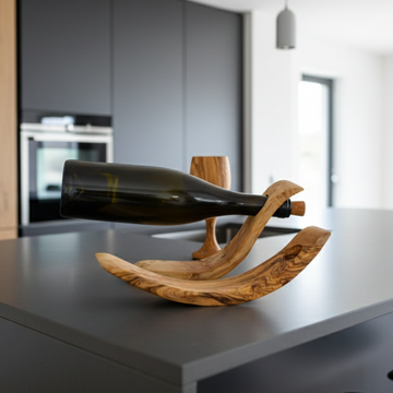 Mettez en valeur vos bouteilles préférées avec le charme rustique du bois d’olivier artisanal.